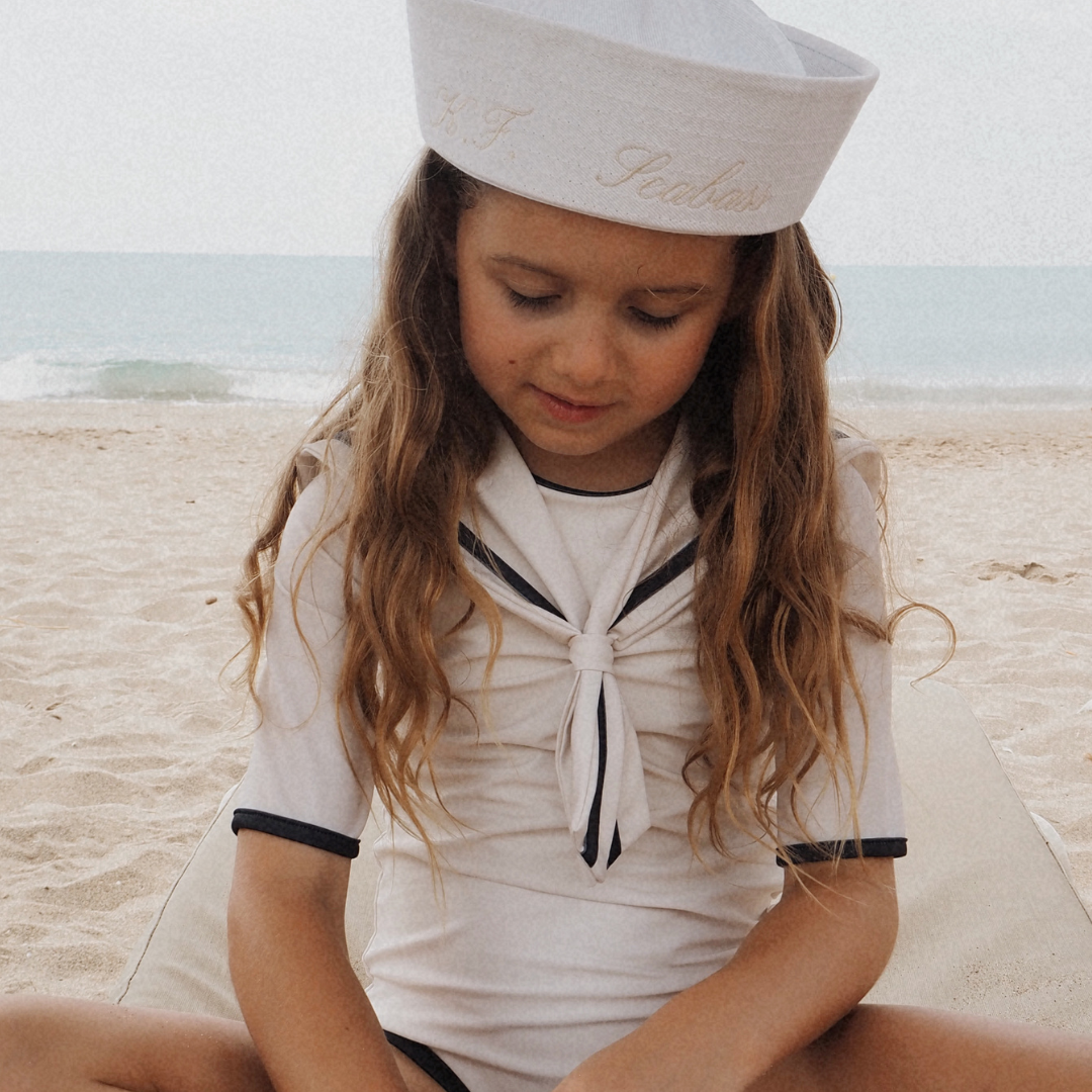 Girl UV Swimsuit Sailor Nice - white navy