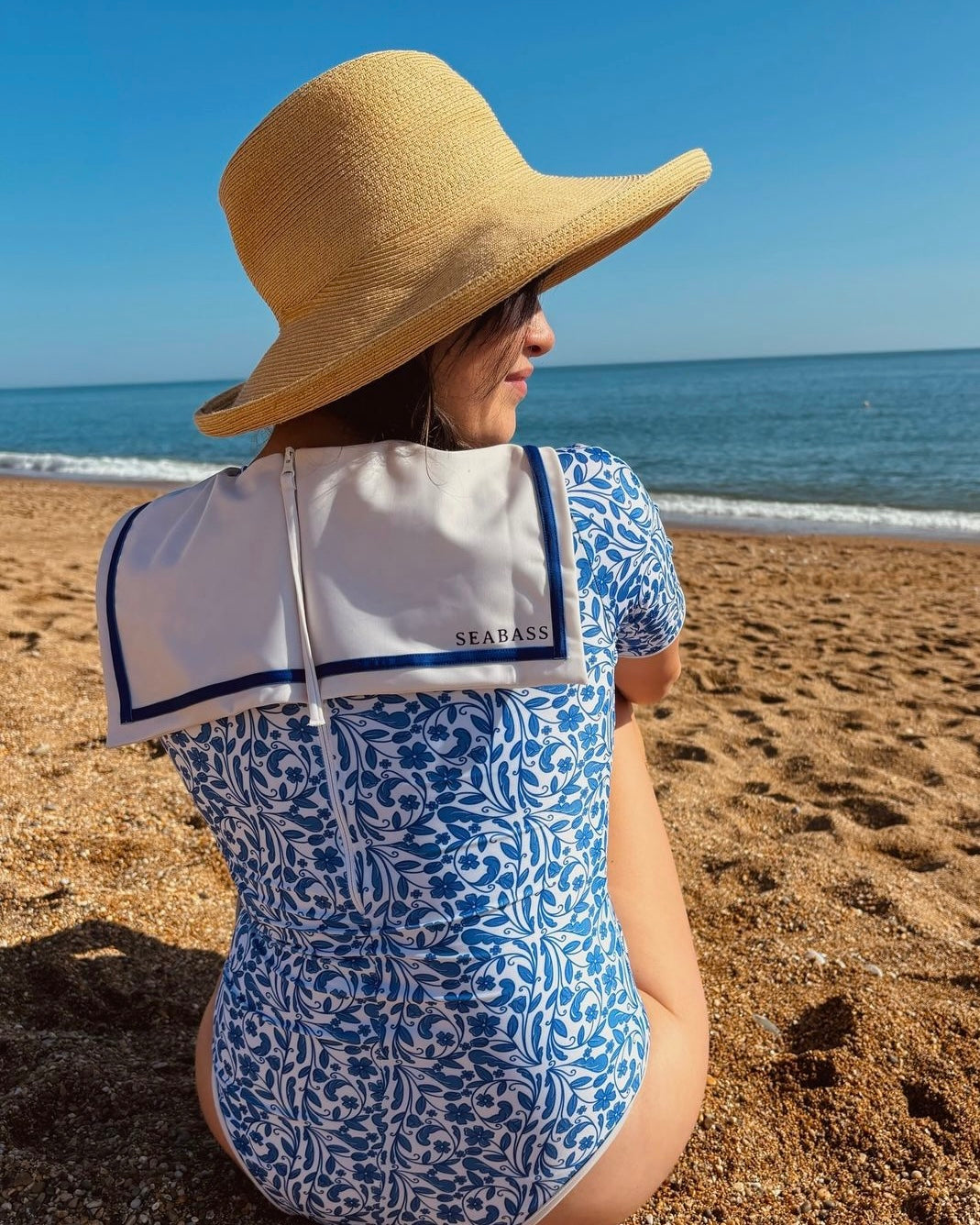 Stylish and protective swimwear, emphasizing elegant designs with effortless elegance. Designed with UPF 50+ protection to shield against 98% of UV rays, this long-sleeved UV swimsuit sailor features iconic design elements of the sailor suit, incorporating them into stylish and functional swimwear. The swimwear covers the shoulders, has a high neckline, and, like the classic sailor suit, the cape provides extra protection. Crafted from a blend of 78% recycled polyester and 22% elastane, with a butter-soft inner lining for extra support, it offers both comfort and sustainability. The clean lines, classic design, and thoughtful details of our pieces allow you to enjoy the sun responsibly with this ultimate sun protection, in style. Fairtrade and handmade in Portugal.