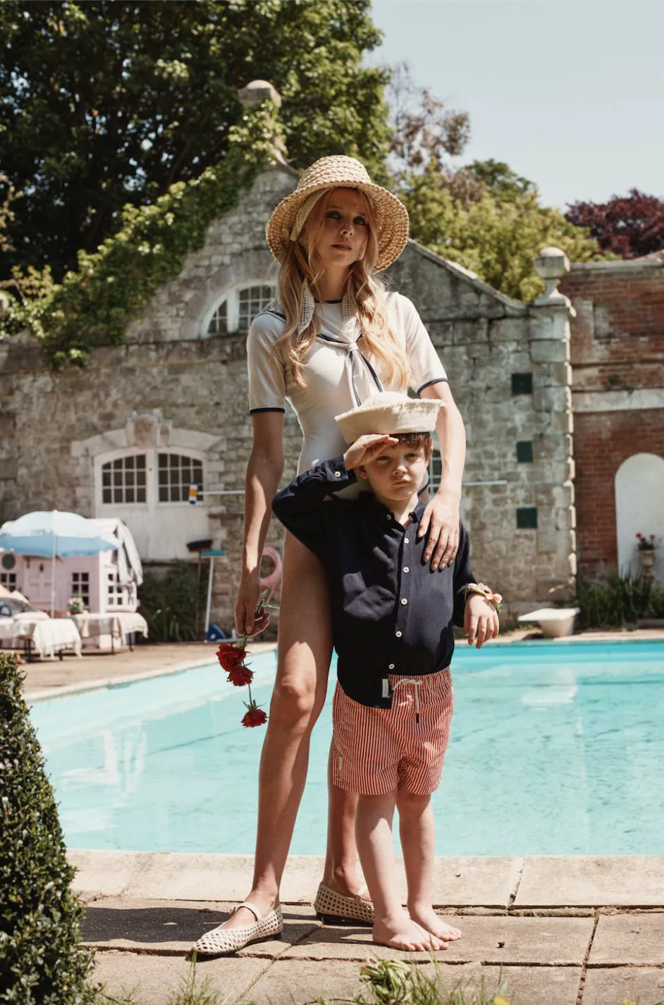 GRETA BELLAMACINA: It was one of those days when life is exactly as you want it to be. The sunlight was painting the sky, geraniums in pots, country roads beyond. The children were running between the garden and the house. I guess when I think of the Riviera, I think of this way of life. Your body follows the sunlight around the garden. SEABASS really embodies this feeling. The swimsuits have this nostalgic, cinematic quality. It's a dream to wear them because they transport you to a gentler and more elegant time, where dressing up is more about living.
