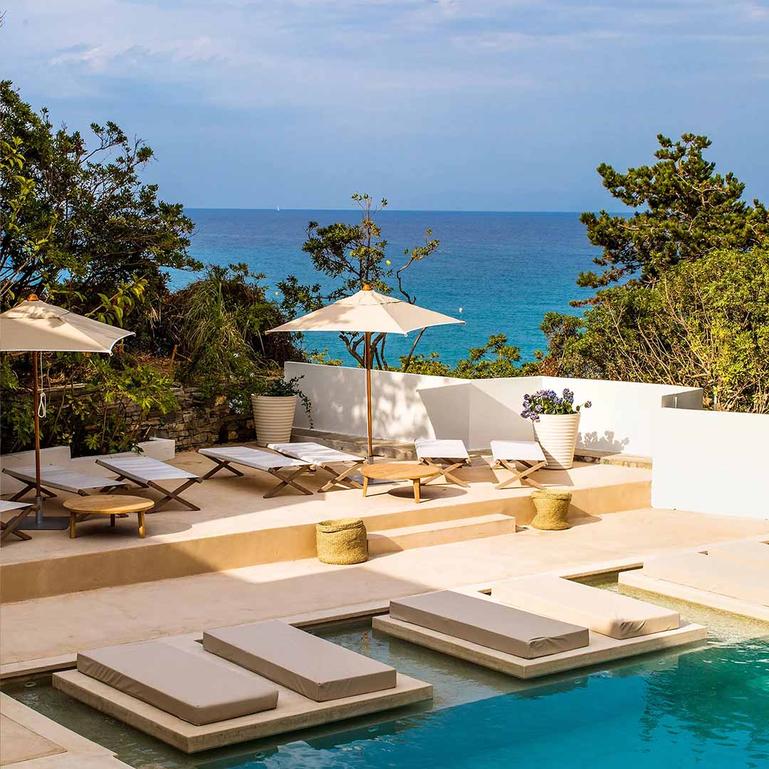 Nestled atop the heights of Rondinara Bay, this stunning hotel is just a 5-minute drive from the amazing beach. With only 7 suites and surrounded by a typical Mediterranean garden filled with olive and fig trees, it gives the most relaxing and serene atmosphere.