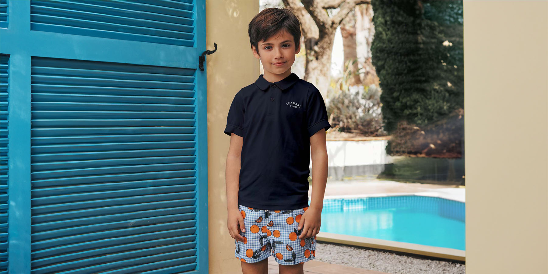 The dreamiest destination, a French island basking in the Italian sun: Corsica. With Sardinia in kissing distance, own language and Italian influences - it has the best of all worlds. Just like the island with its specific personality, our Corsica swim short a unique and exiting piece. With all over gingham print and oranges, because this is the place where the citrus fruit clementine comes from - the sunniest vitamins and island to enjoy and explore with the whole family.
