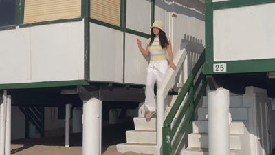 The Rae Swimsuit features a classic crew neck, cap sleeves, full coverage, and built-in support. Made from UV-protective recycled Italian fabric, it blends style, comfort, and sustainability. Available for pre-order now.